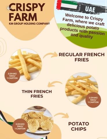 Crispy farm is a leading wholesale distributor of premium frozen French fries, serving customers across the UAE. We pride ourselves on delivering high-quality products and reliable service to meet the needs of our clients.